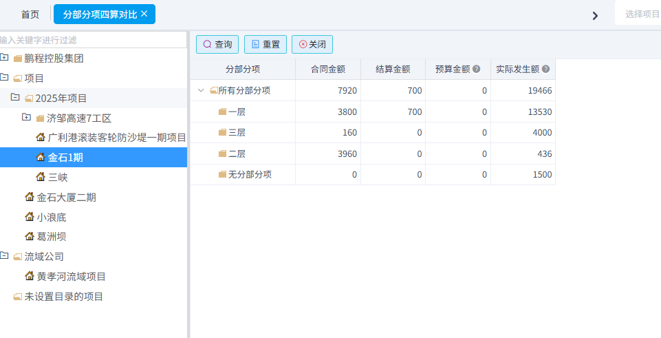 可以根据需求统计成本清单进度、合同清单进度(四算对比)、项目部位实际发生以及部位分解预算与实际发生。
