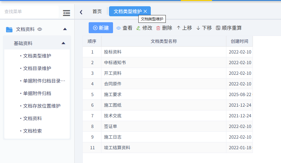 1、文档类型维护
