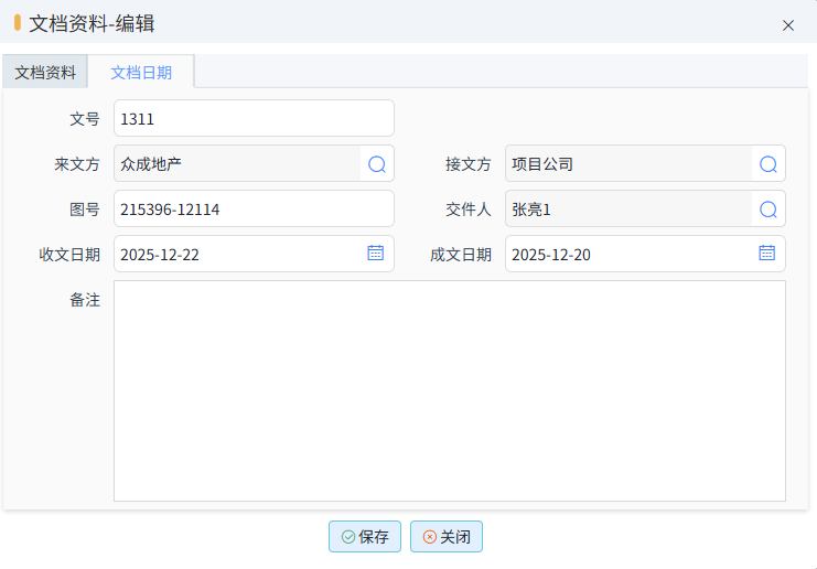 文档日期中,还可以输入,当前文档文号,来文方和接收方等。