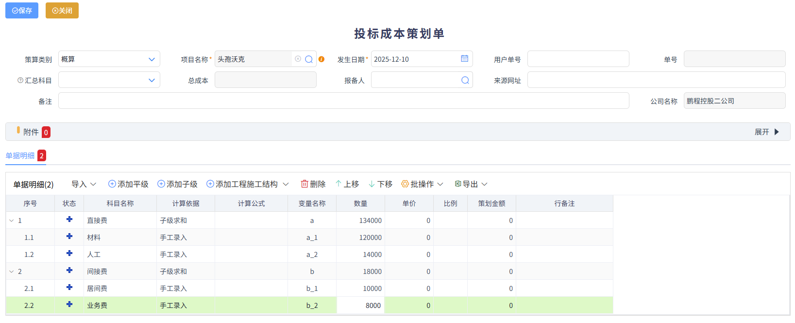 投标策划分估算和概算两种。估算没有可关联的项目名称,即没有确切的项目名称,需要手动输入;概算是可以关联投标阶段的项目名称的。如下图所示