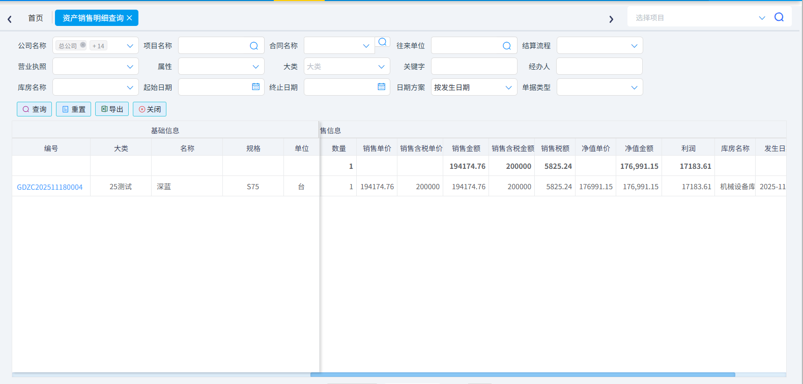 (3)资产销售明细查询