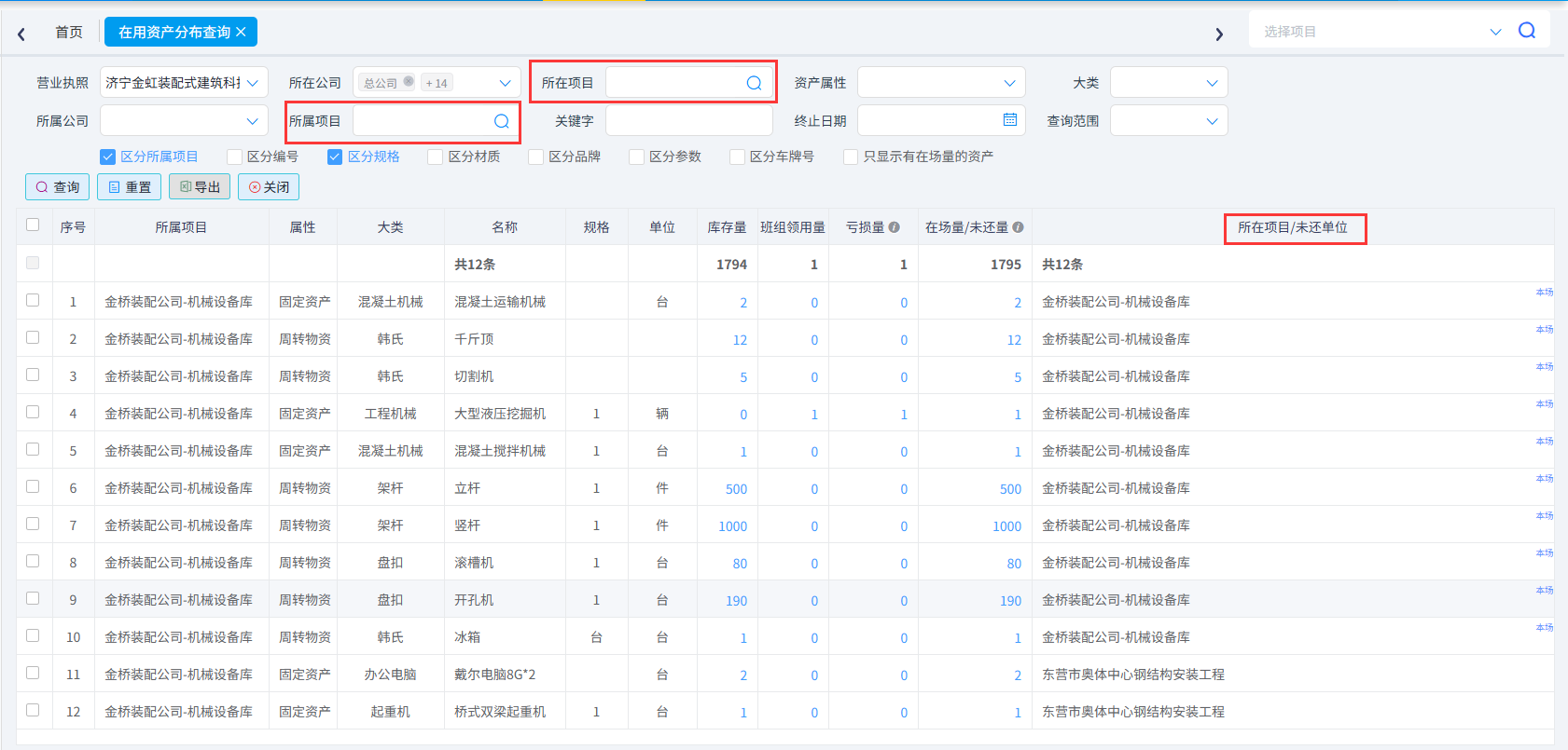 规格与位置:所属项目和使用项目,确保资产可定位。