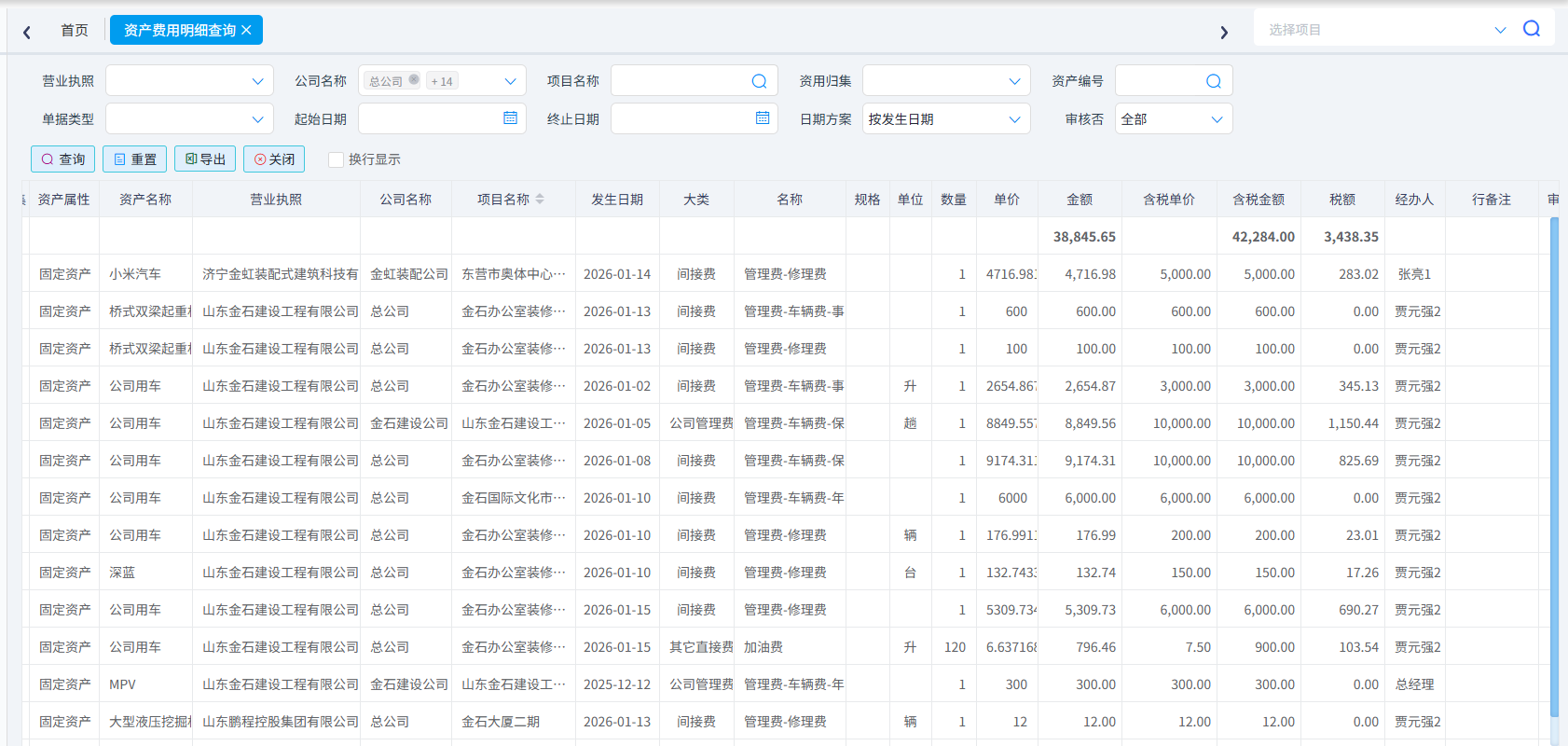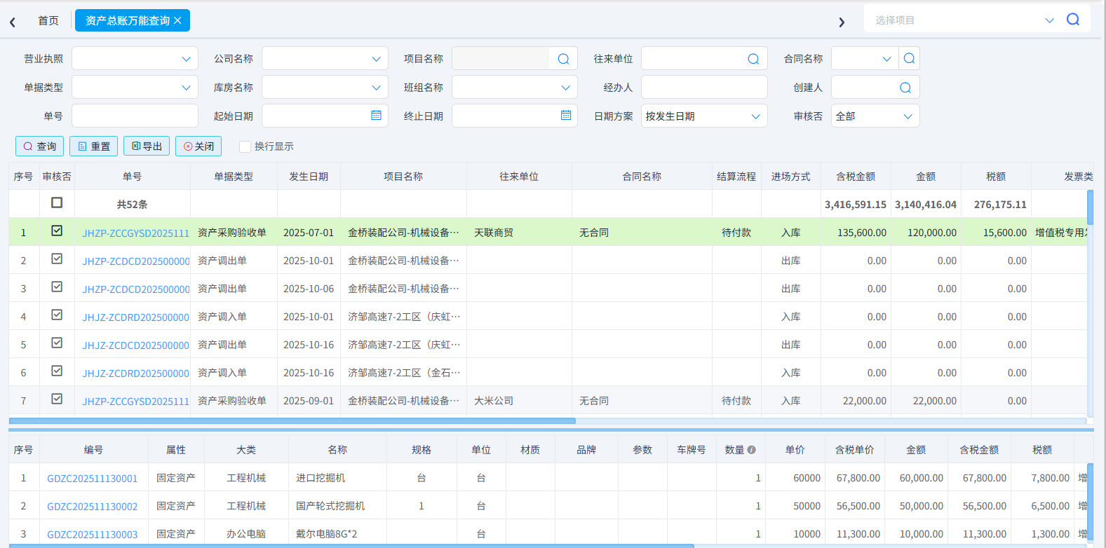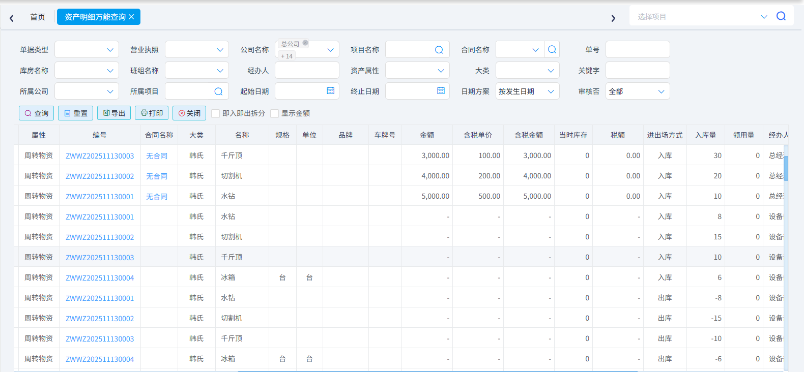 (2)资产明细万能查询