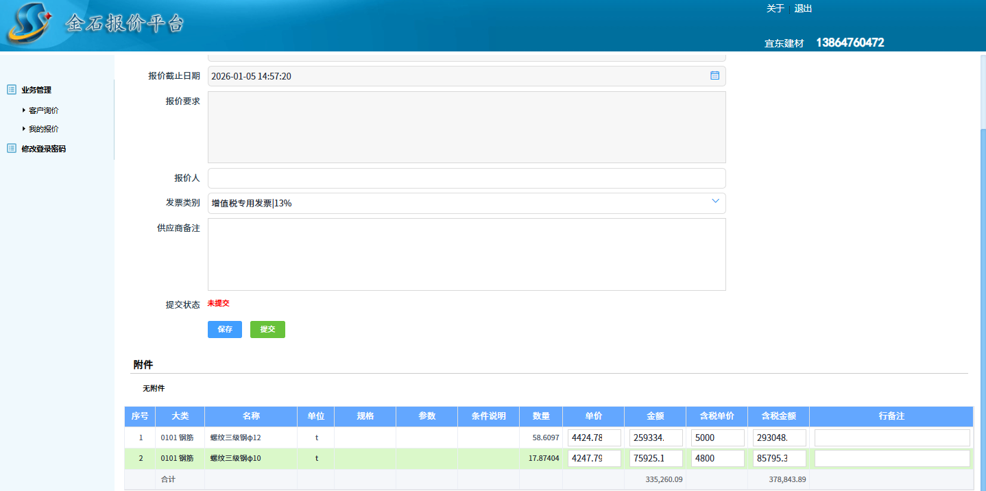 材料询价单审批完成之后可以自动发送短信给供应商,供应商根据短信提示直接在金石报价平台进行报价。