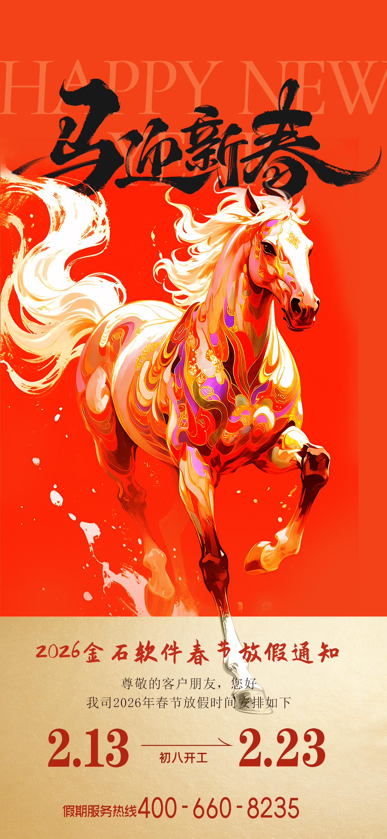 辞旧岁,马踏祥瑞;迎新春,金石献礼。值此农历丙午马年来临之际,金石软件全体员工向您致以最诚挚的节日问候!