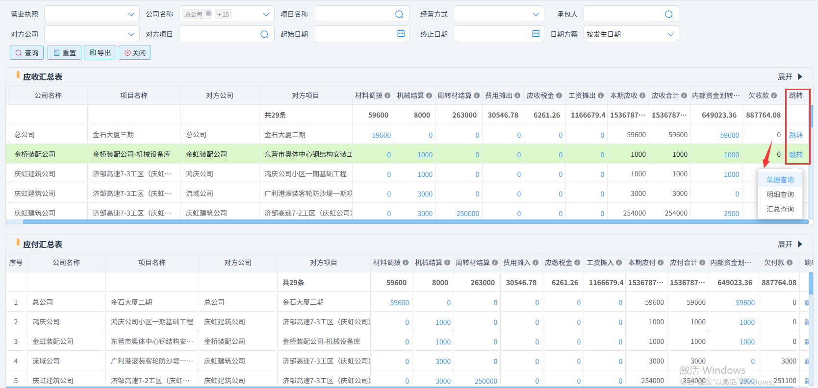 (2)内部应收应付账款查询