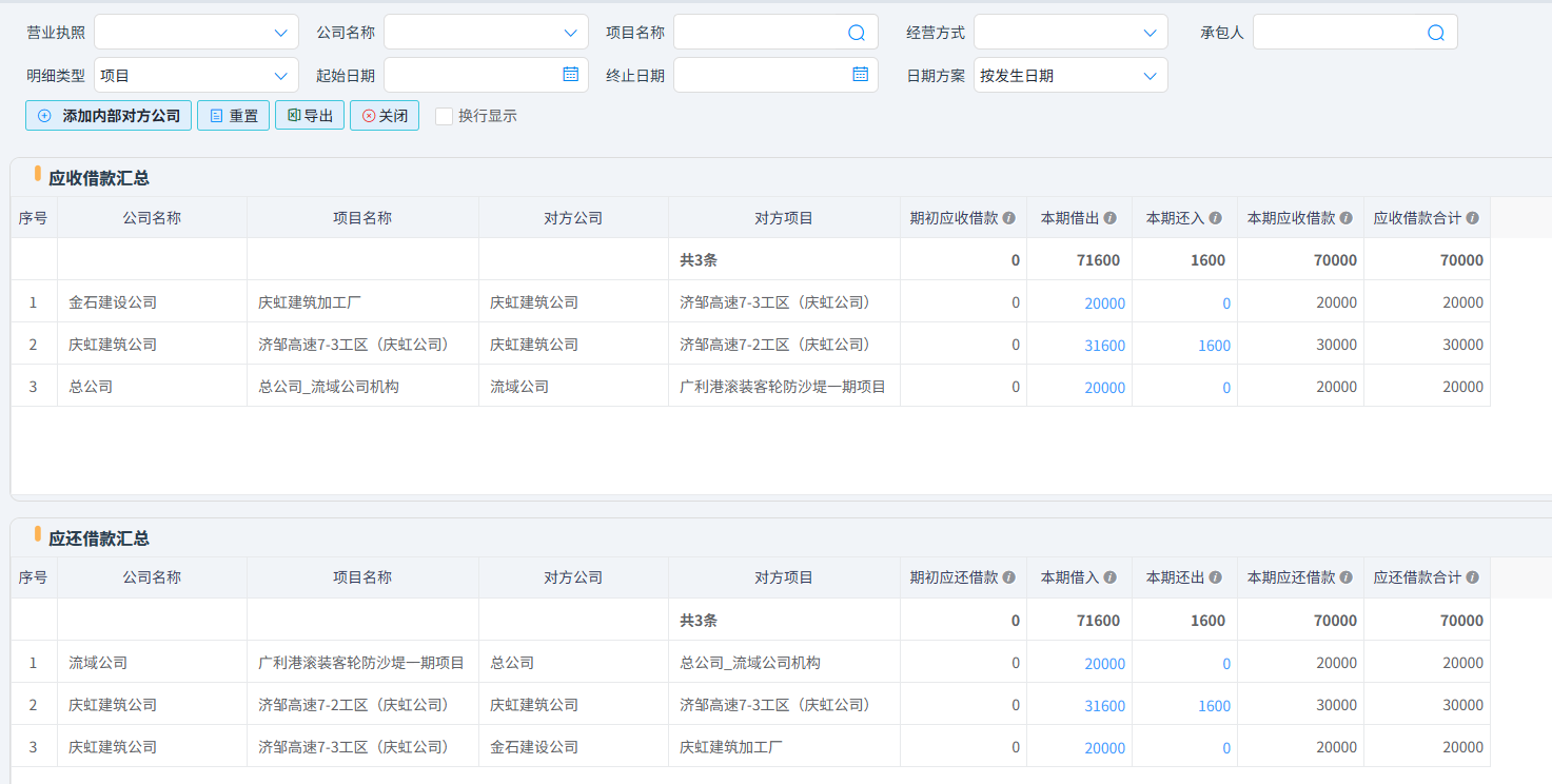 (3)内部往来借还查询